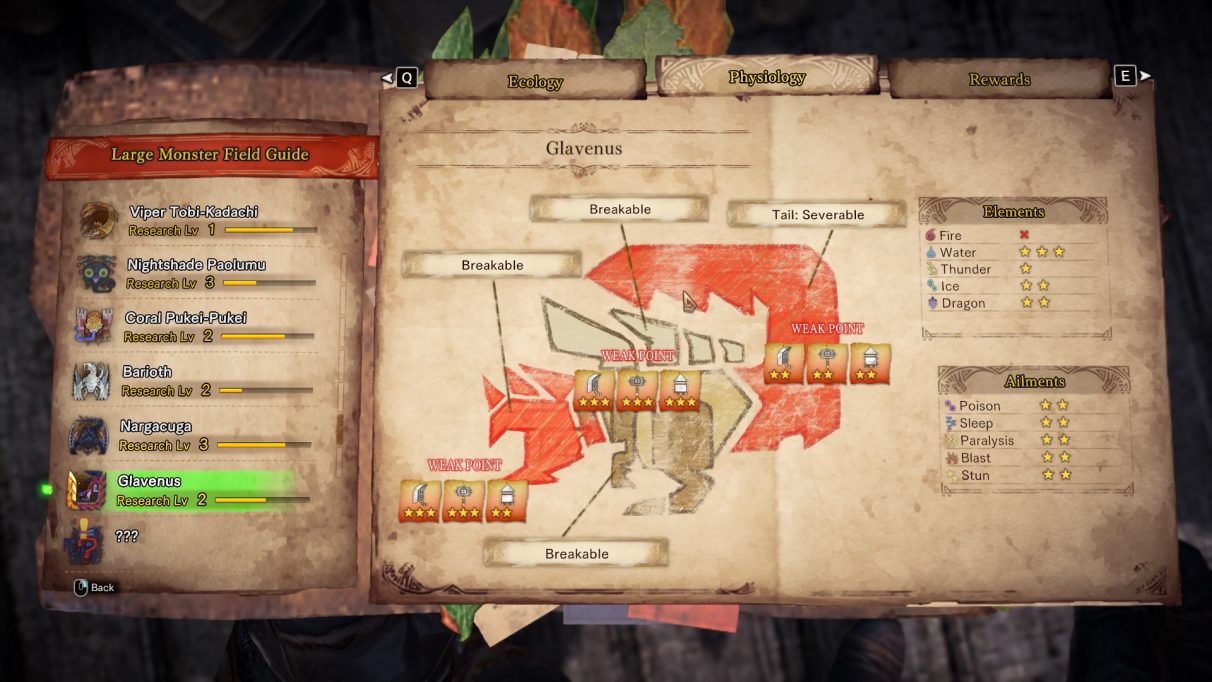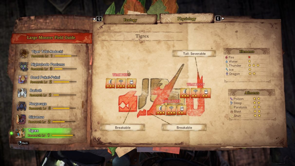 Громовое оружие нанесёт ему самый большой урон. Сражайтесь холодным оружием. Голова, передние когти и хвост — это слабые места, и все они могут быть сломаны или отрезаны. Дистанционное оружие будет бесполезным.