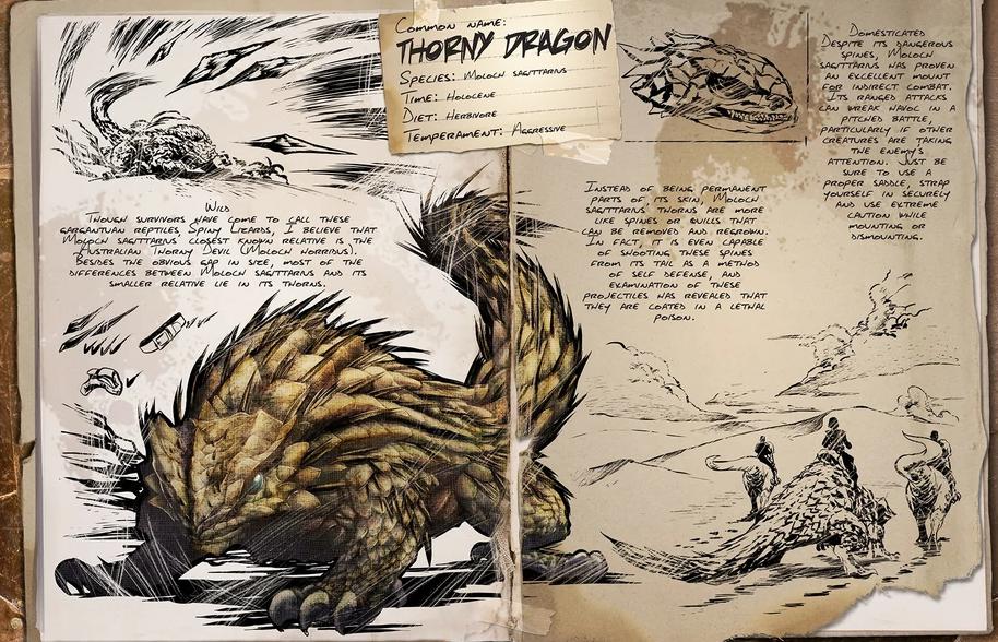 Травоядное, сильное и агрессивное животное. Приручаемое и ездовое. Может кидаться шипами со хвоста и кусаться. После приручения, при наличии седла, можно использовать как мобильный крафтовый стол, как ни странно. Эффективно собирает только дерево и солому.
