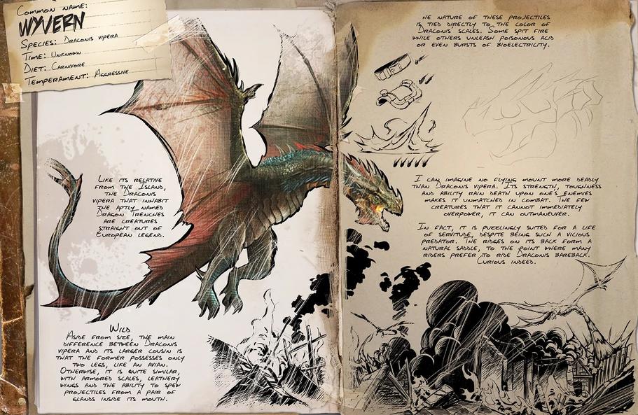 Плотоядные агрессивные животные. Приручить самку или самца невозможно, исключением является выращивание животного из яйца. Животное ездовое. Сильные и огнедышащие. Можно кататься на них без седла. Это мощные, проворные летающие животные. Заполучив хотя бы одного, вы станете смертоносным и сильным игроком. Виверна может эффективно собирать следующие ресурсы: