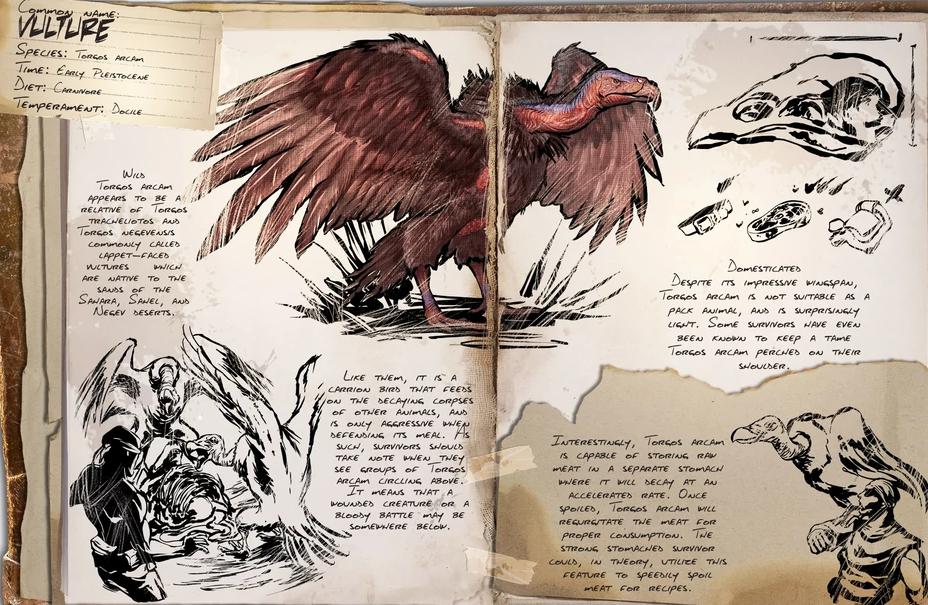 По мощи уступает Виверне, но сосуществовать с грифом проще. Приручаемый и менее агрессивный чем Виверна. Также является ездовым животным. Если на приручение Виверны у вас нет сил и желания, то Гриф ваш отличный выбор. Животное может собирать хитин, протухшее мясо и кожу. Но эффективность крайне низкая.