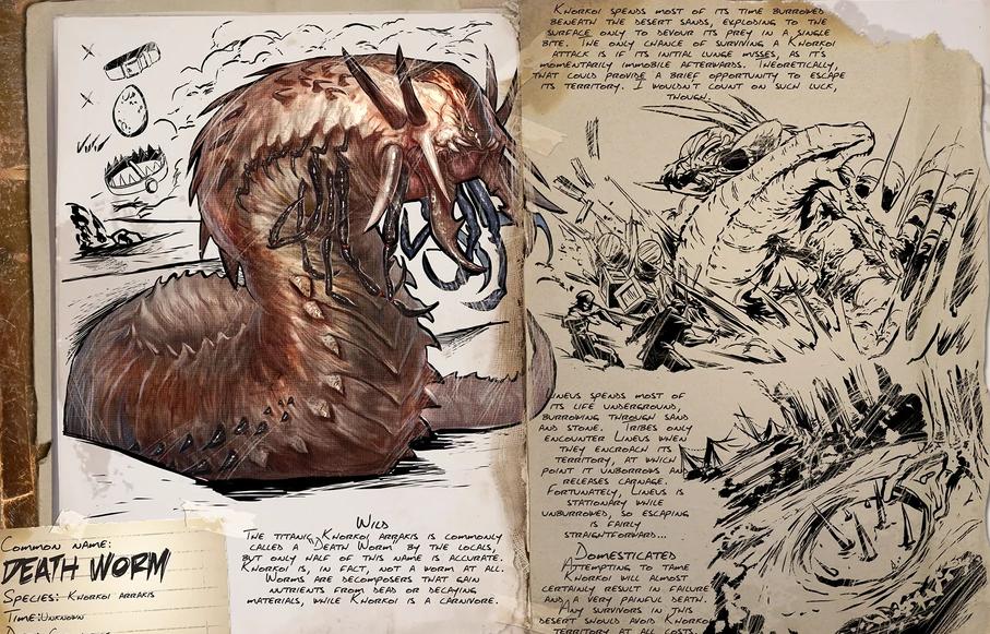 Агрессивное, сильное и крайне опасное для игроков существо. Невозможно приручить и оседлать. Нападает из под земли, что делает невозможным атаку с расстояния. Встретить можно в песчаных дюнах выженной земли. Игроку в одиночку практически с ним не справится.