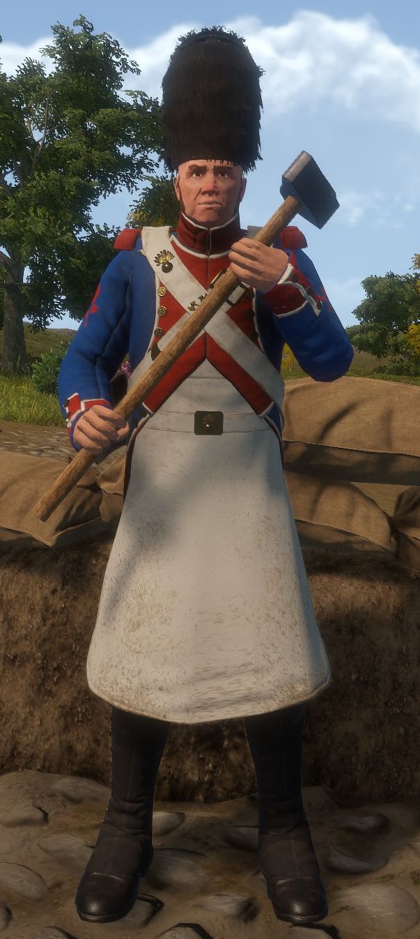 Армии наполеоновской эпохи в значительной степени полагались на технических экспертов инженерного корпуса для проведения осады, мостовых переходов, укреплений и так далее. Большинство армий прикрепляли саперов к линейным / легким пехотным и артиллерийским полкам. Шахтеры и саперы имели решающее значение для мобильности полка, в том числе и в тактике игры Holdfast.