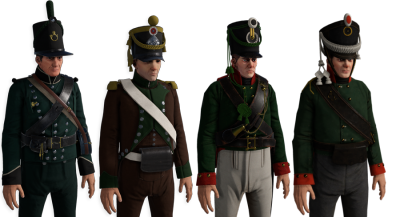 Стрелки — их эффективность хороша на расстоянии, без ближнего боя. Они превосходны в боевой мобильности и точности, что делает их опасными против линейной пехоты. Не получают бонусов ни от музыкантов, ни от флагоносцев.