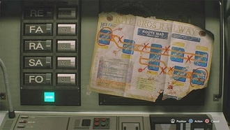 Возьмите спрей для первой помощи, обе стопки минных патронов и проверьте уведомление о новом оружии U. B. C. S. Ударьте по ящику с товаром и пишущей машинке, а затем выходите за дверь.