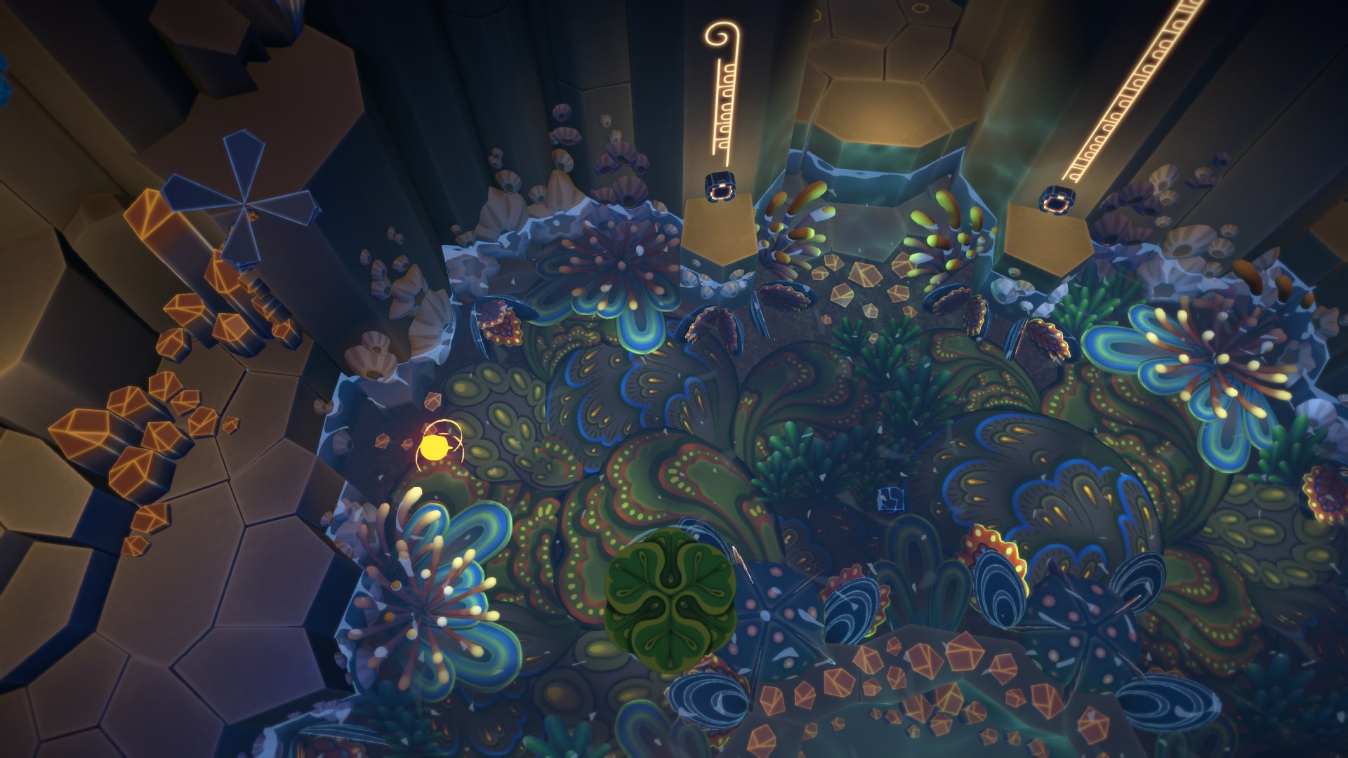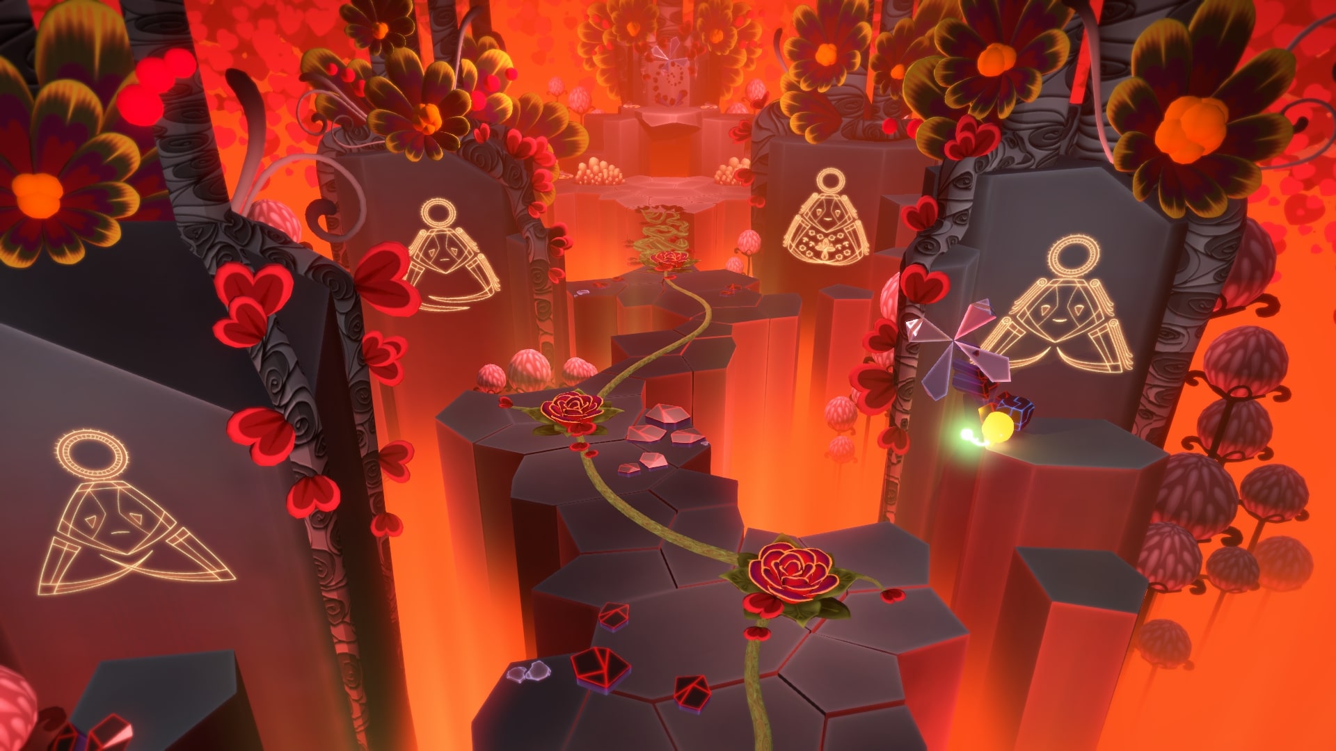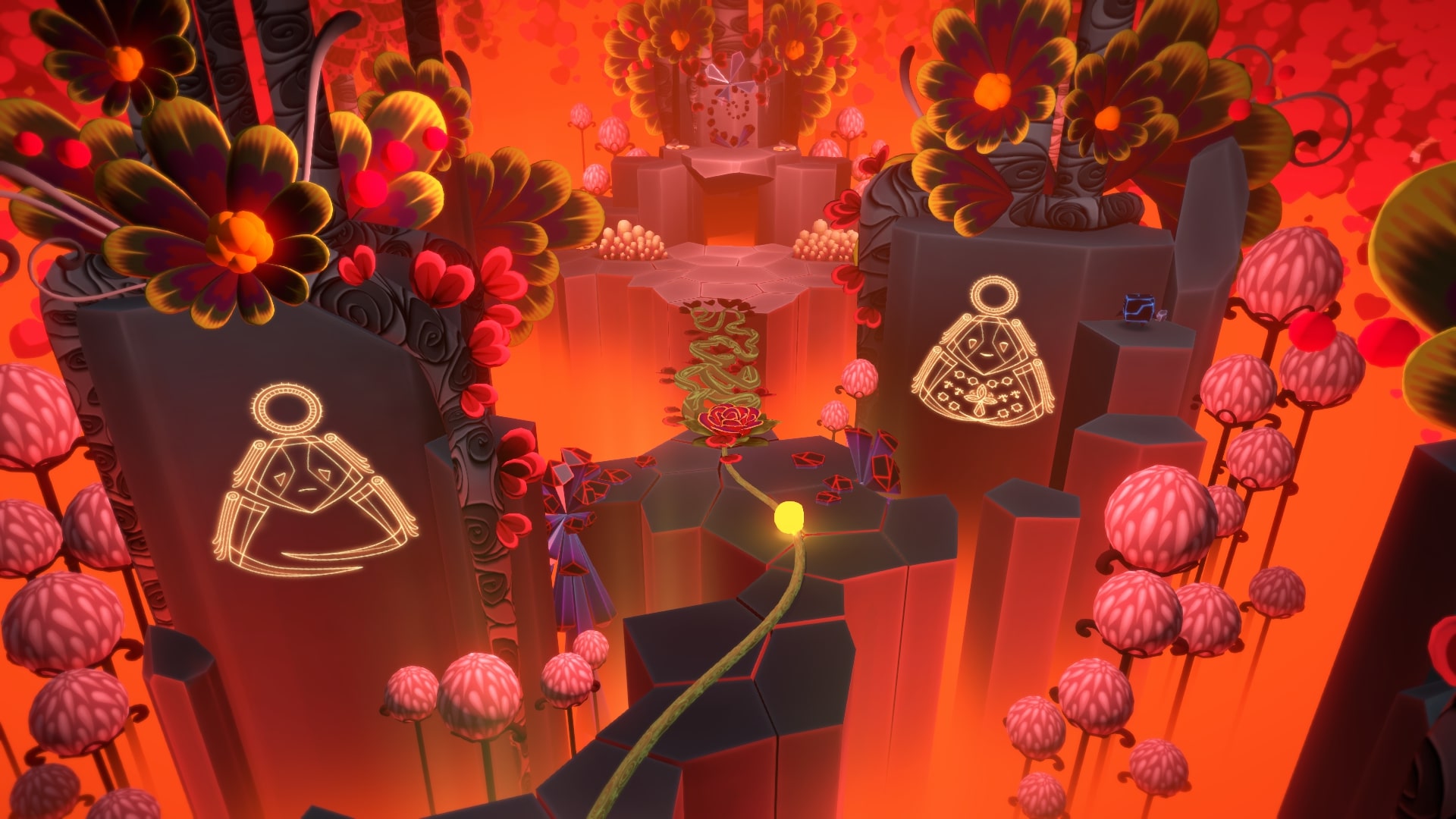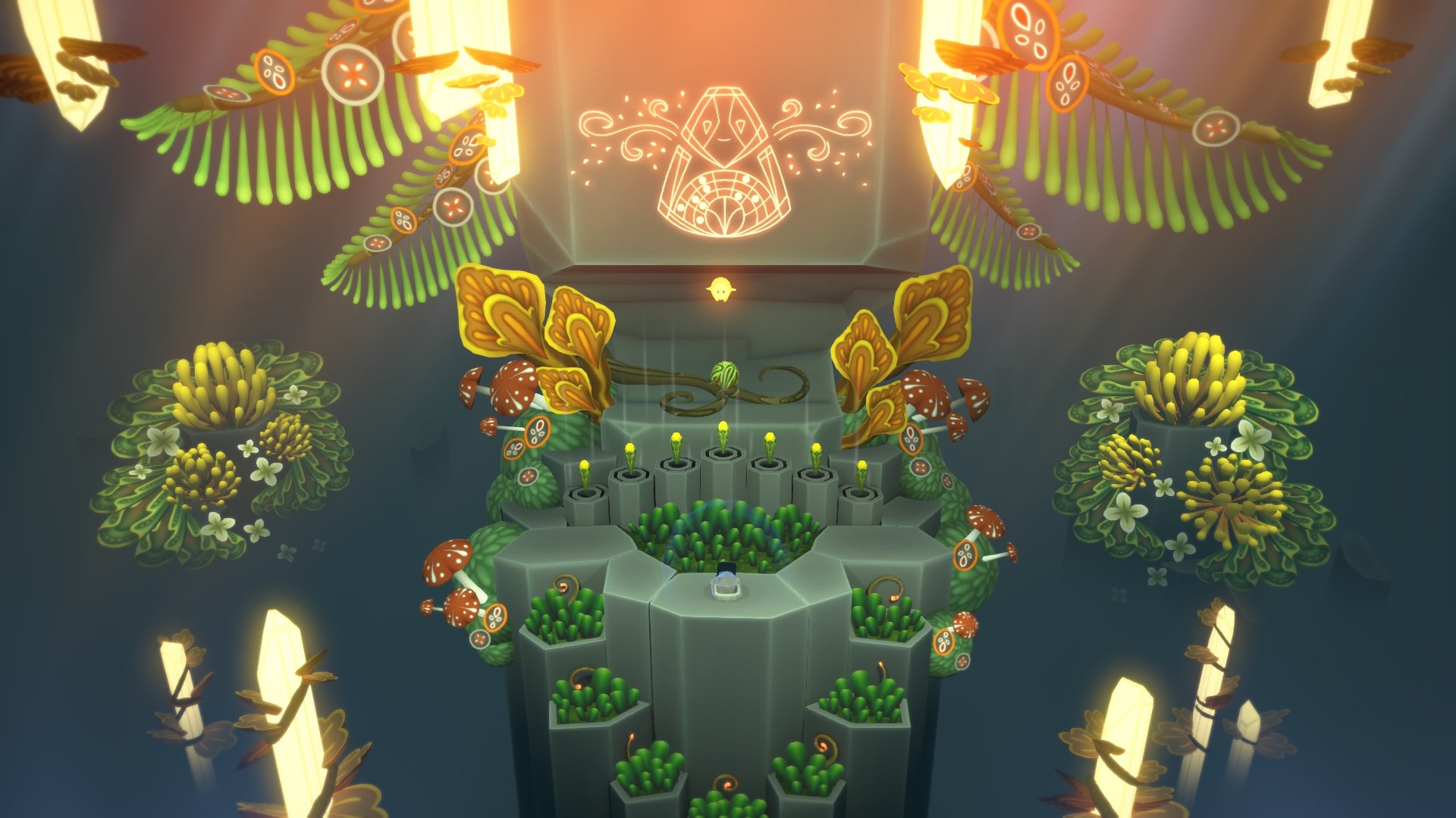 На самом верху справа (после того как цветы распустятся) будет еще один спрятанный кокон. Слева, посередине вдали, на колонне, росток. Съедаем Звезду Камнем, и светим вдаль, на него.