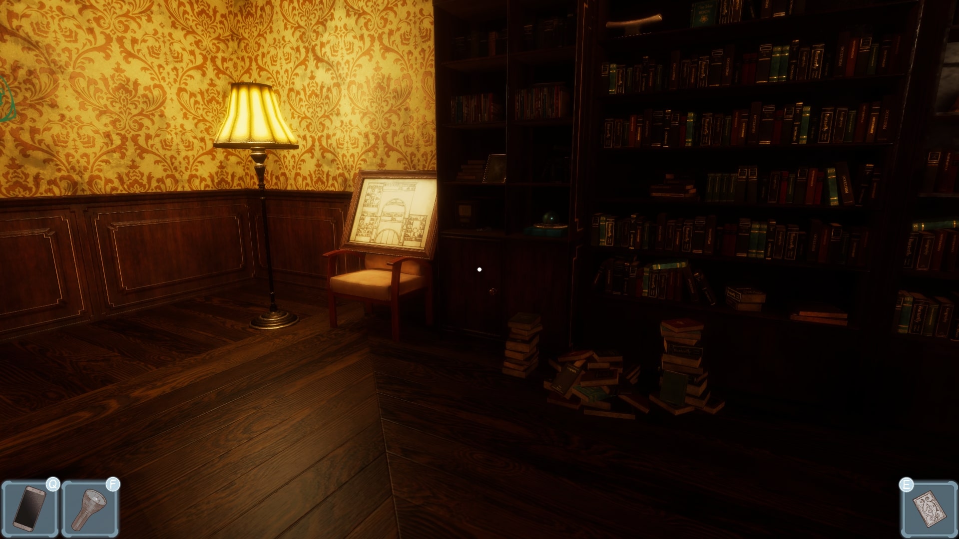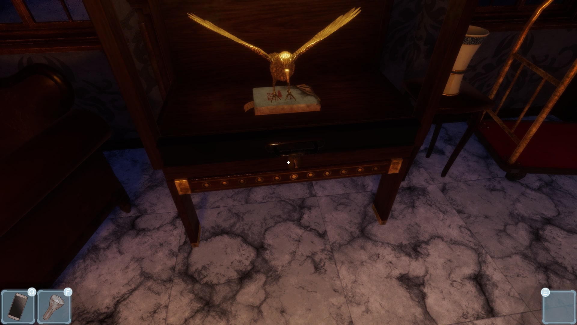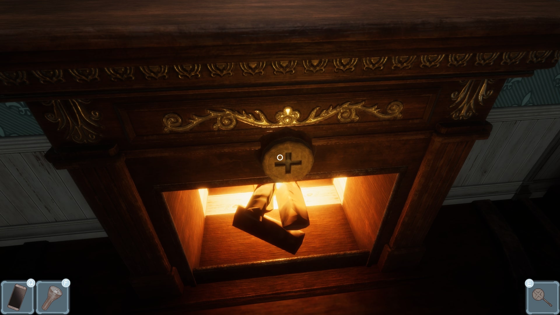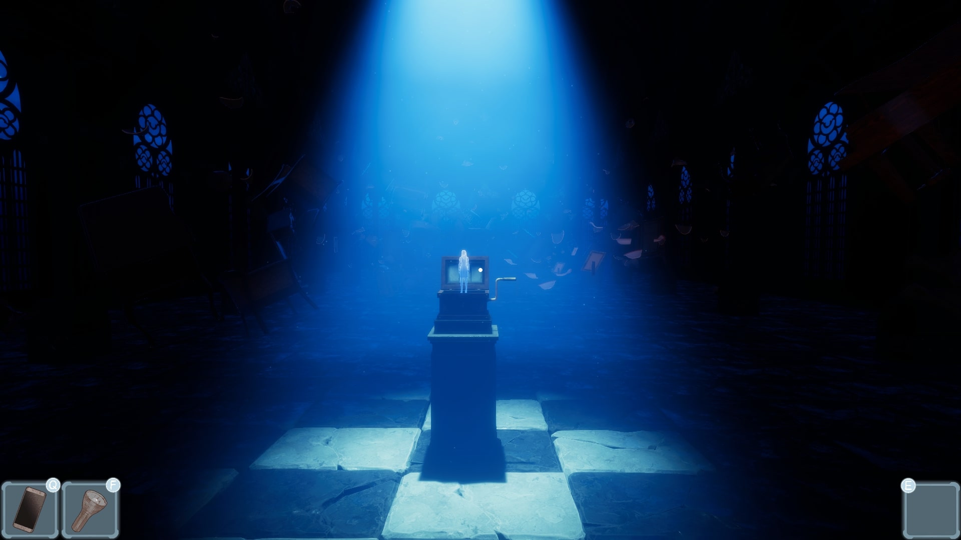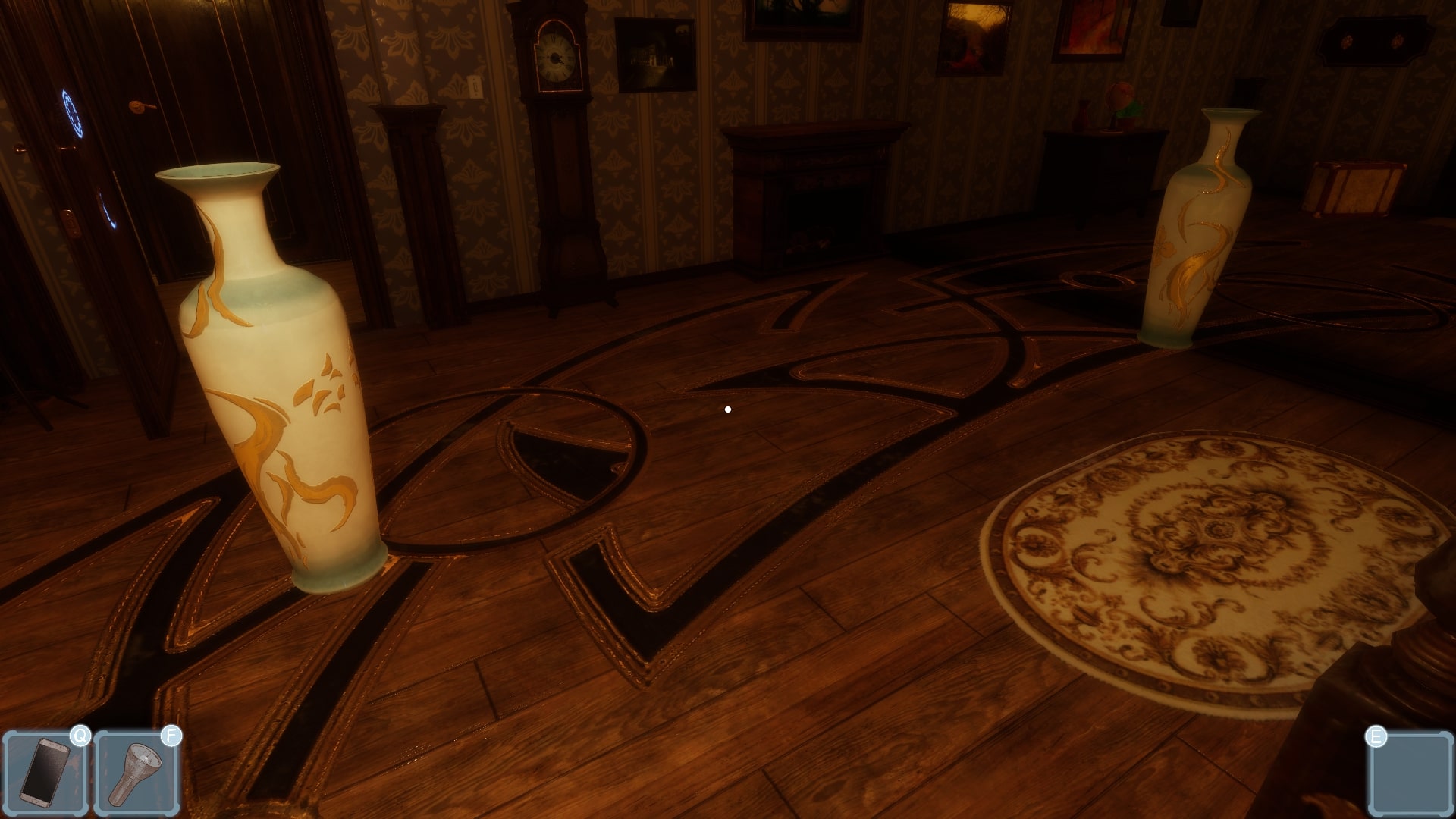 После этого наше расследование начинается уже всерьез. Побродив по прихожей этого особняка, и посмотрев на разнообразные вещи (количество вещей и их вид указан в телефоне), проходим в единственную открытую комнату. В центре стоит музыкальная шкатулка, с таким же призраком, что мы видели раньше. Запускаем шкатулку.