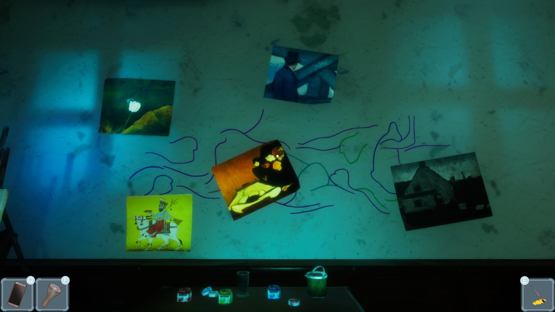 После этого мы входим в комнату с красками. Тут сквозь нас опять пролетит чертова птица(которую я уже начинаю ненавидеть). Задача тут простая, но не очевидная. На стене висят картины, такие же как стоят в мольбертах.