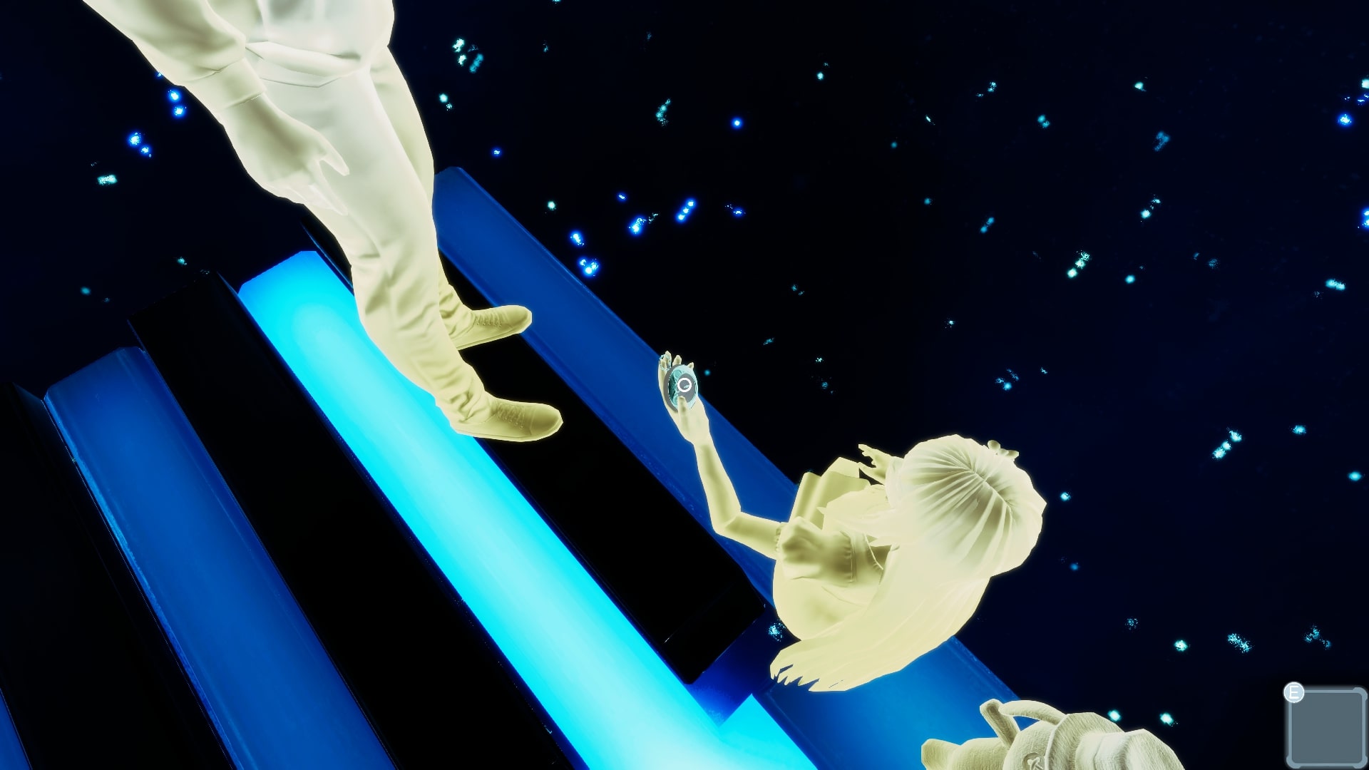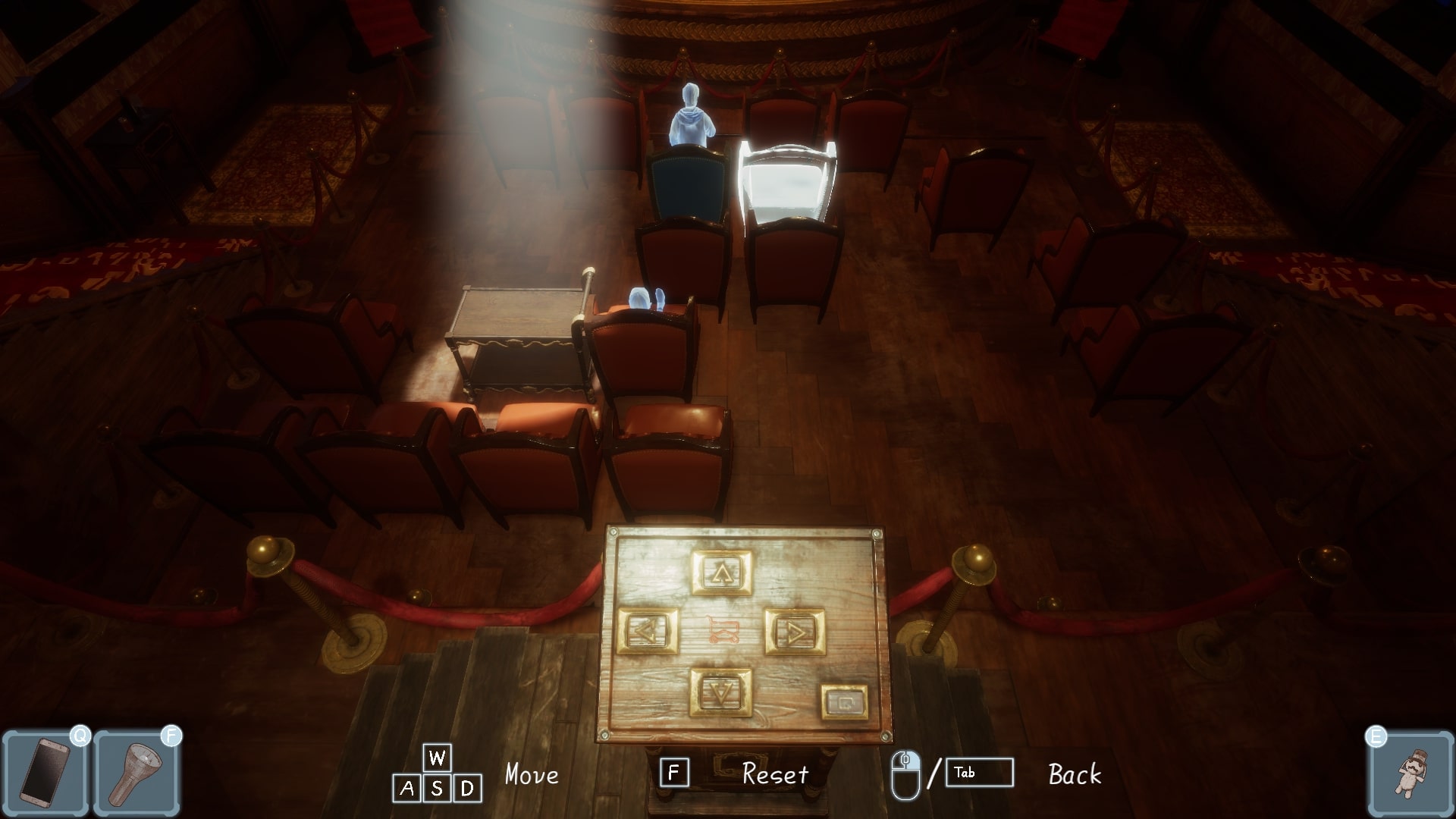 Потом начинается представление, в котором мы активно участвуем, и смотрим на жизнь маленькой принцессы. Каждое театральное действие надо передавать предметы от одного участника пьесы-другому. Но принцесса взрослеет, и фантомы-зрители начинают принимать участие в представлении. Корону например надо взять со стенки в постановке и отдать Сестре в зале.