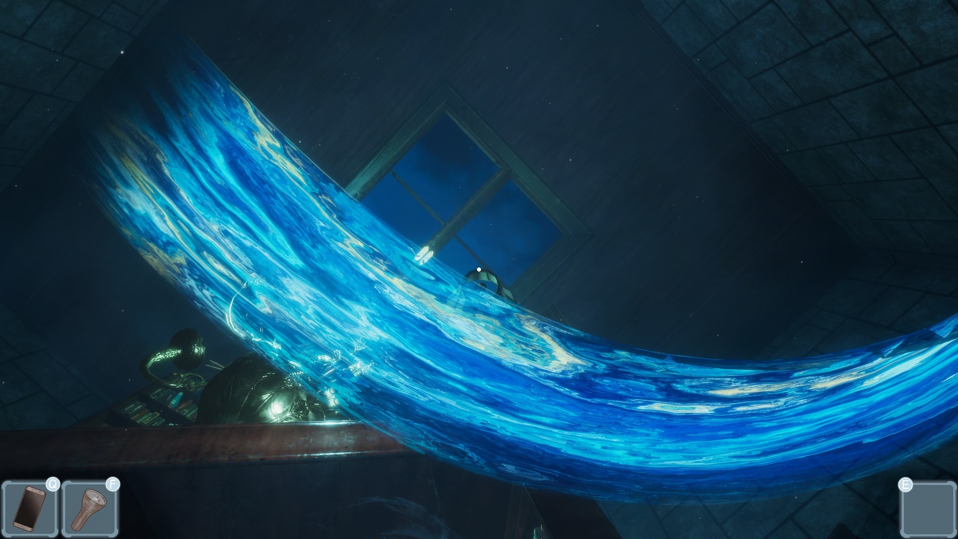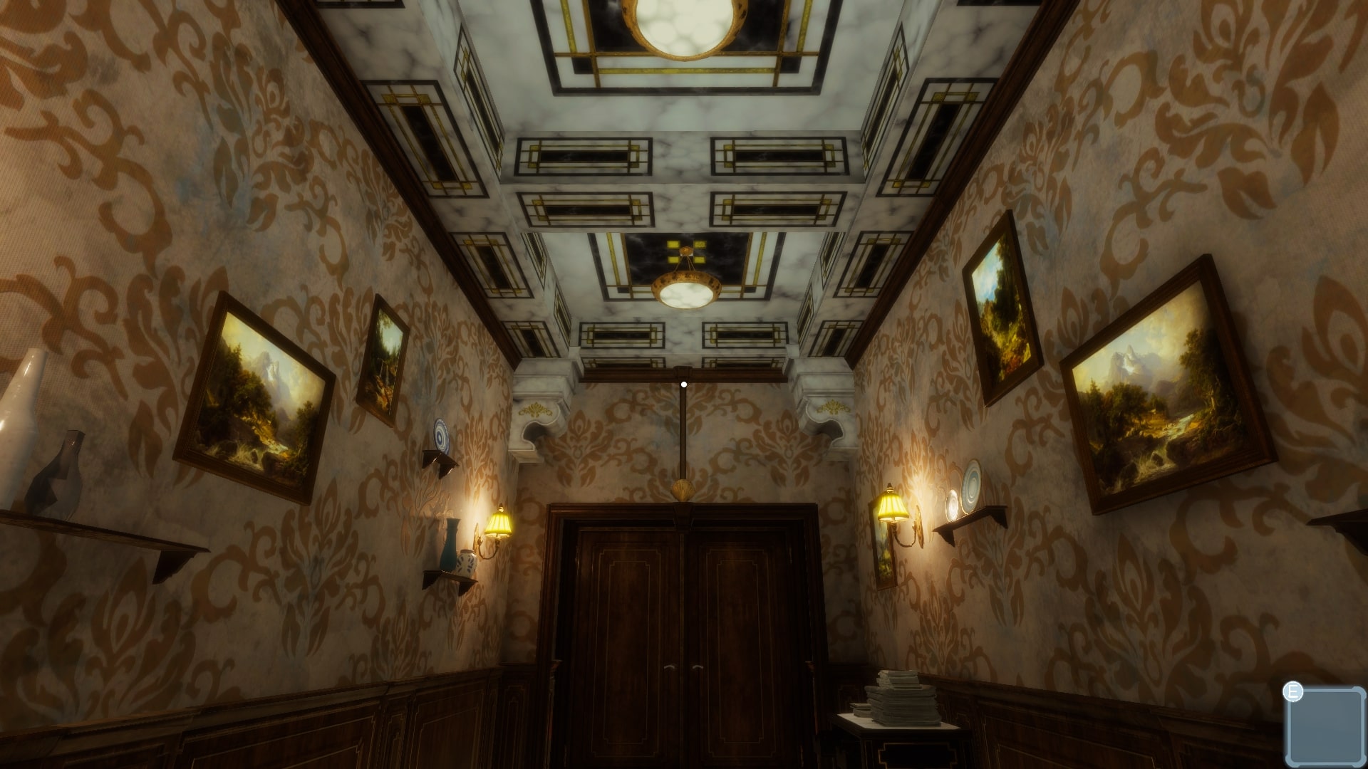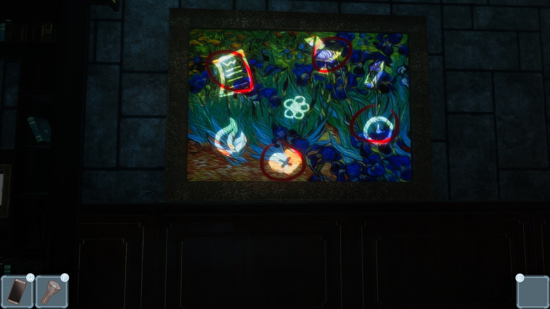 Тут мы смотрим как отец пытается гипнотизировать дочь, но неудачно. Общаемся сообщениями с незнакомцем, и он советует воспользоваться лифтом. Для этого не надо спускаться обратно, там лифт еще закрыт. Выходим через оранжерею, рассматриваем попутно книгу. Спускаемся вниз, и оказываемся в довольно странной комнате. Лестница после спуска исчезает, и мы остаемся наедине с полотнами-полосками.