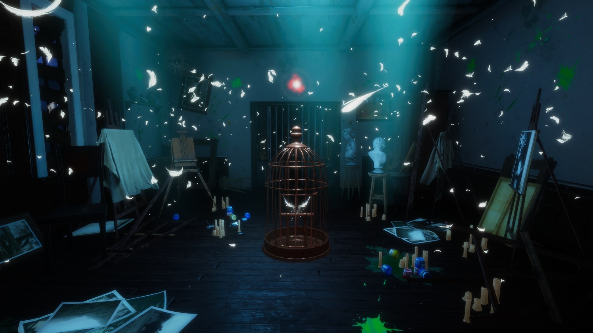 Помогаем ему собрать деньги на лечение, разбиваем бутылки, и наконец даем ему фотографию. Позади вас открывается окно, проходим туда. Тут мы наконец то встречаемся с птицей, воплощением всех негативных эмоций этого дома. Путь к ней преграждает решетка. Что бы ее открыть нужно решить головоломку с перьями. У нас 5 перьев, разного веса, и нам надо уравновесить чаши весов. Для этого вы кладете на одну часть весов золотое перо (самое тяжелое), и латунное (рыжеватое, среднее по весу). На другую чашу весов кладем все остальные перья. Когда весы уравновесятся, решетка поднимется. Идем к птице.