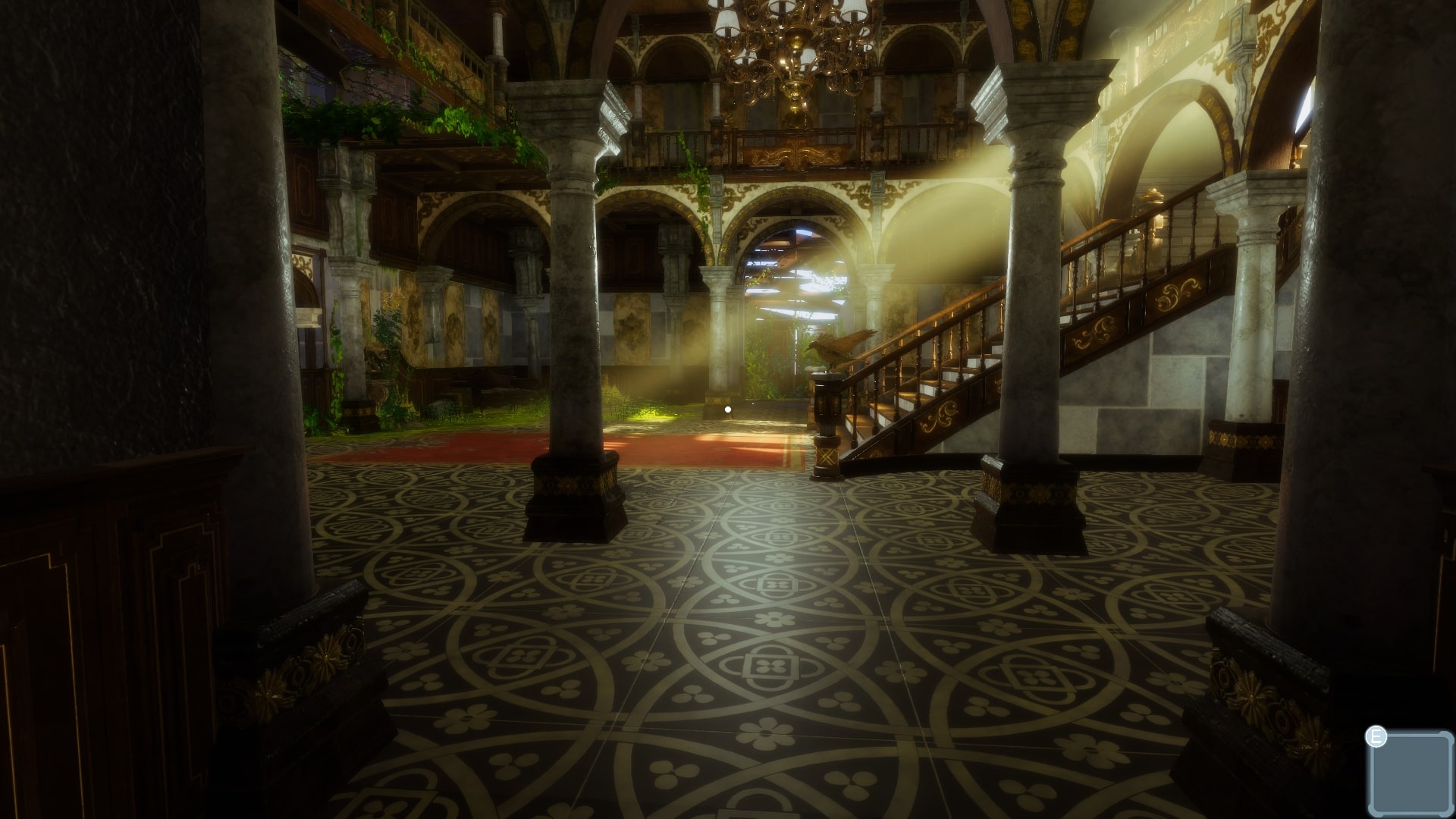 Поднимаемся в вестибюль, теперь яркий светлый, хоть и разрушенный. И идем не к основным дверям (они все еще закрыты) ,а на второй этаж к часам, туда же, куда полетела птица, и наш дух улетает вслед за ней. На этом игра заканчивается.