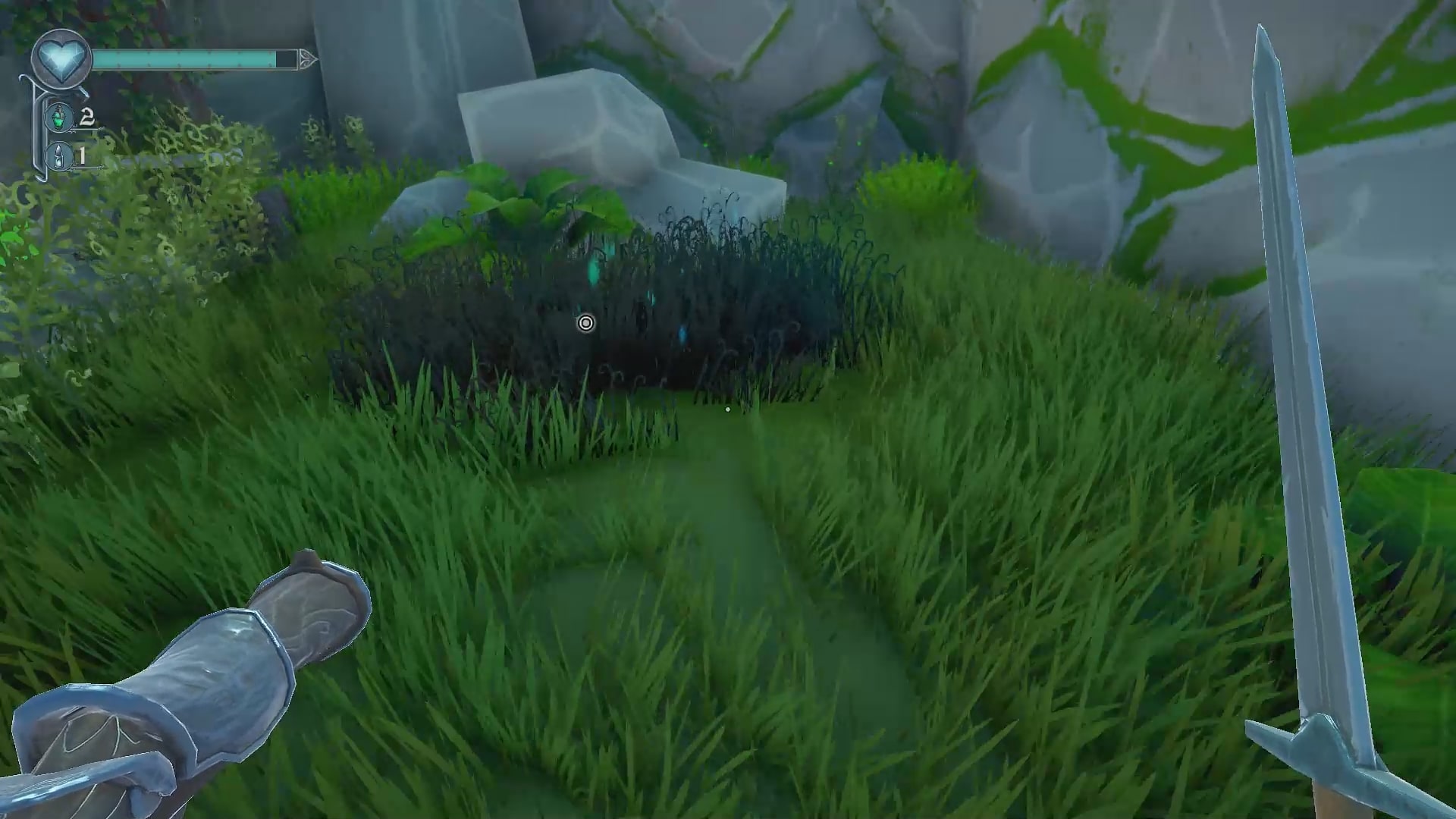 Проходим мимо дерева с глазами в дупле (сейчас нам там ничего не надо) Перед нами первое подземелье, перед ним небольшое ответвление с норой и кусающимся кроликом, коло норы забираем Ведьмин гриб. Проходим чуть вперед, за Подземельем поворот с сундуком.