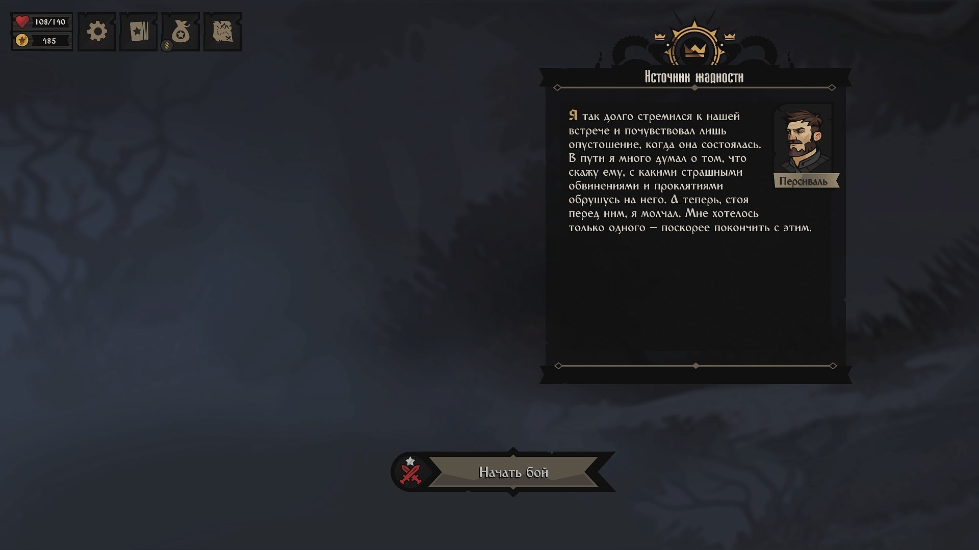 - Слишком жадный (В начале хода, если в руке нет печати, получает 100 урона)