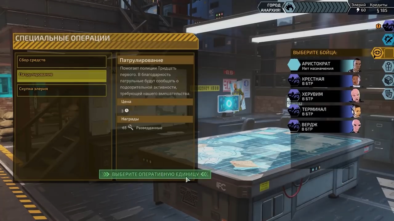 - Анархия растет все больше по мере того, как игра продвигается через различные расследования. Используйте способности полевых команд и задания спецопераций, чтобы управлять уровнем анархии.