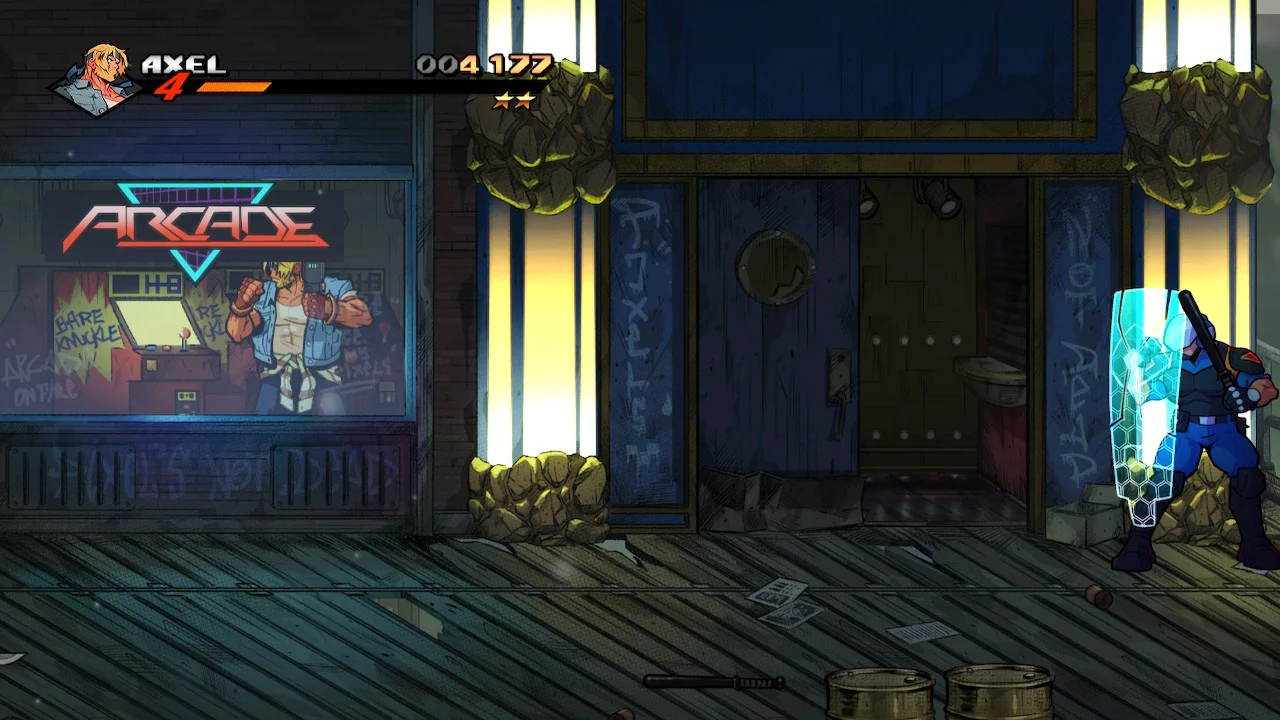 Разблокировка ретро-уровней в Streets of Rage 4 является простой задачей - проходя локацию заметьте игровые автоматы «Bare Knuckle» (отсылка на японское название Streets of Rage), а затем ищите тазер рядом.