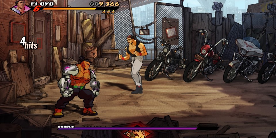 Тут есть нюанс. Байки (мотоциклы). Уничтожив их, вы получите награды, такие как здоровье и очки, но за каждый уничтоженный мотоцикл появится ещё враг. Если вы хотите облегчить бой, постарайтесь свести к минимуму попадание по мотоциклам, но вы также можете уничтожать их, дабы набрать более высокий уровень. Когда здоровье Барбона уменьшится на половину, экран начнет мигать фиолетовым, и его атаки будут сильнее. Барбон совсем не опасен для вас.