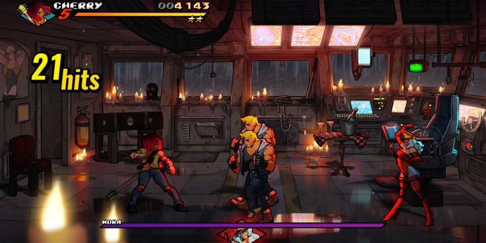 Эстель бесполезно зажимать в углу, она вас легко перепрыгнет. Довольно рано в бою Эстель запросит помощь от полицейской машины, которая будет стрелять в вас ракетами. Уворачивайтесь всеми силами, дабы не попасть в зону поражения. Именно эта атака у неё самая опасная. Также Эстель будет призывать обычных бойцов, и здесь лучше бить саму Эстель, а обычным врагам уделять минимум внимания, дабы она вновь не успела вызвать ракетницу. Когда её здоровье будет меньше половины, она вновь запросит поддержку ракетницы, и на этот раз атаки будут сильнее.