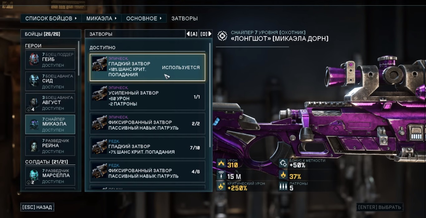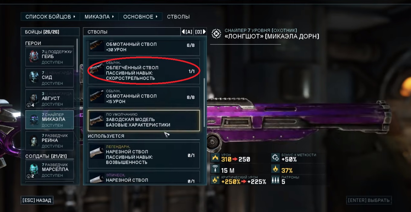 Для длинноствольной снайперской винтовки Микаэлы стоит следующие модификации: