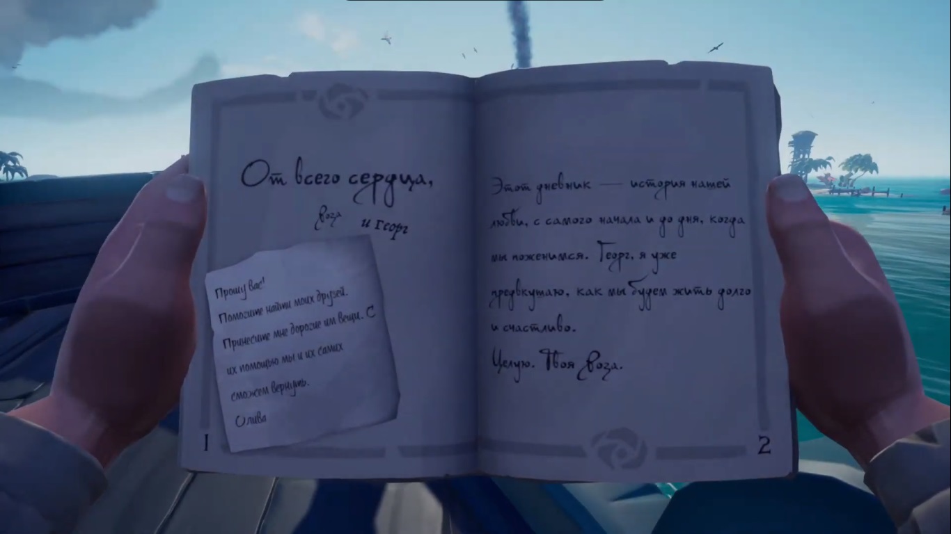После раскопок вы обнаружите записи, которые повествуют о ссоре Розы и Георга. Молодые пираты разошлись во мнениях и не смогли прийти к компромиссу о том, куда спрятать клад. Какая досада. Столько отличных мест для тайника, и это, абсолютно точно, мелочь для таких крепких отношений. Стоило ли оно того? Давайте посмотрим.