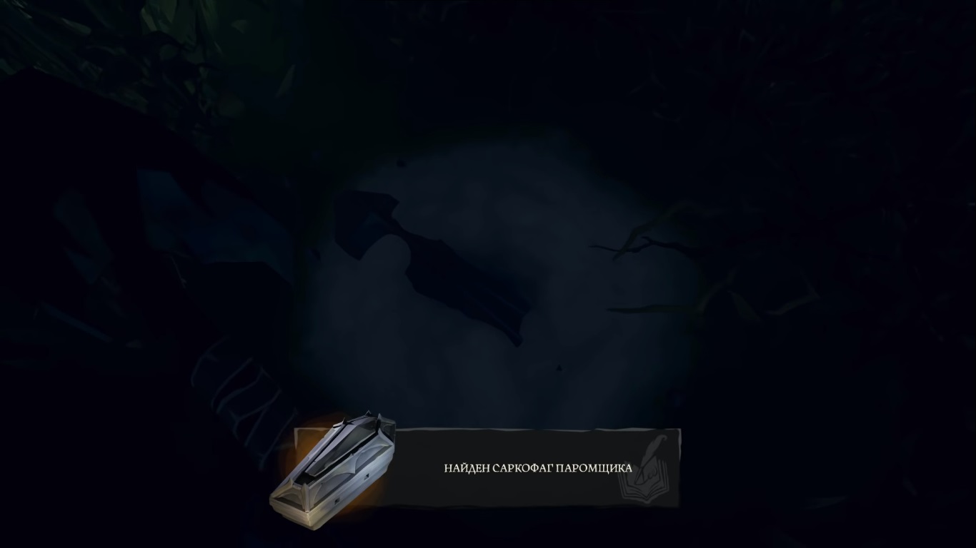 Остановитесь под сухим деревом и начните копать рядом с ним. Вы найдёте саркофаг паромщика.