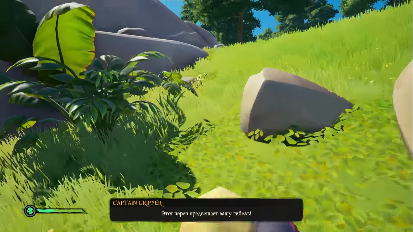 Прибыв на место, вы встретите скелета по имени Капитан Гриппер. Прежде чем драться с ним, послушайте, что он говорит. Он скажет, что скелеты оставили череп у восьминогого камня, и об этом может знать Мегги.