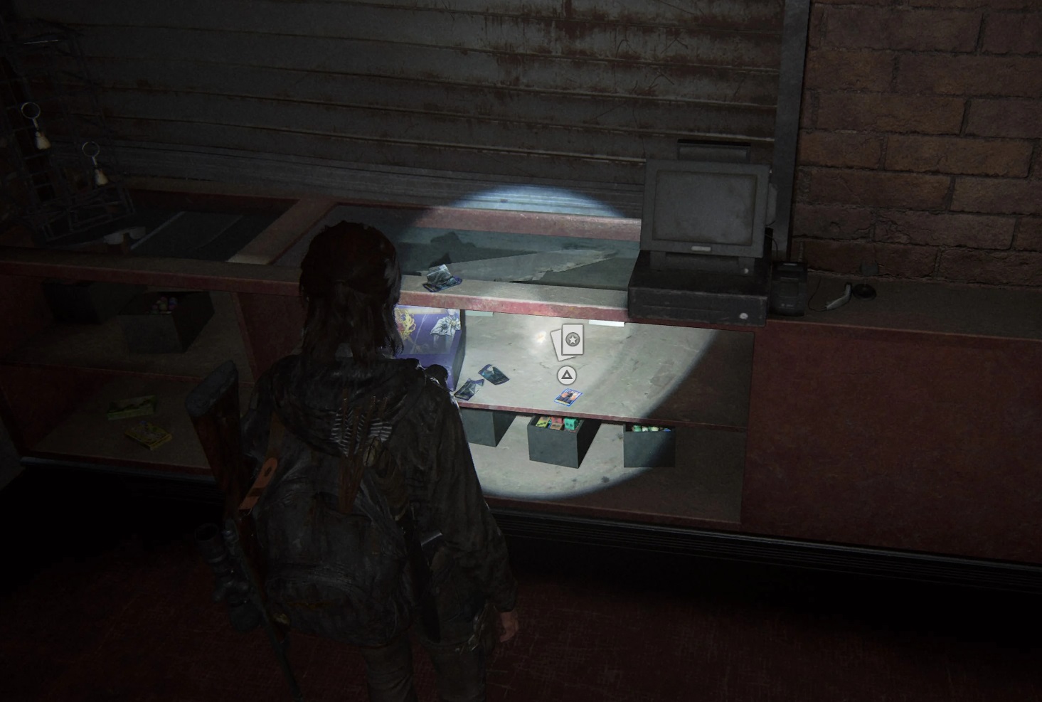 Randy Stles – а вот здесь будьте осторожны, это глава с серафитами. Элли нужно добраться до пустых полок, на которых редко где валяются синие коробочки. Это бывший бутик с продуктами, загляните за прилавок. Здесь никто не будет против маленького мародерства.
