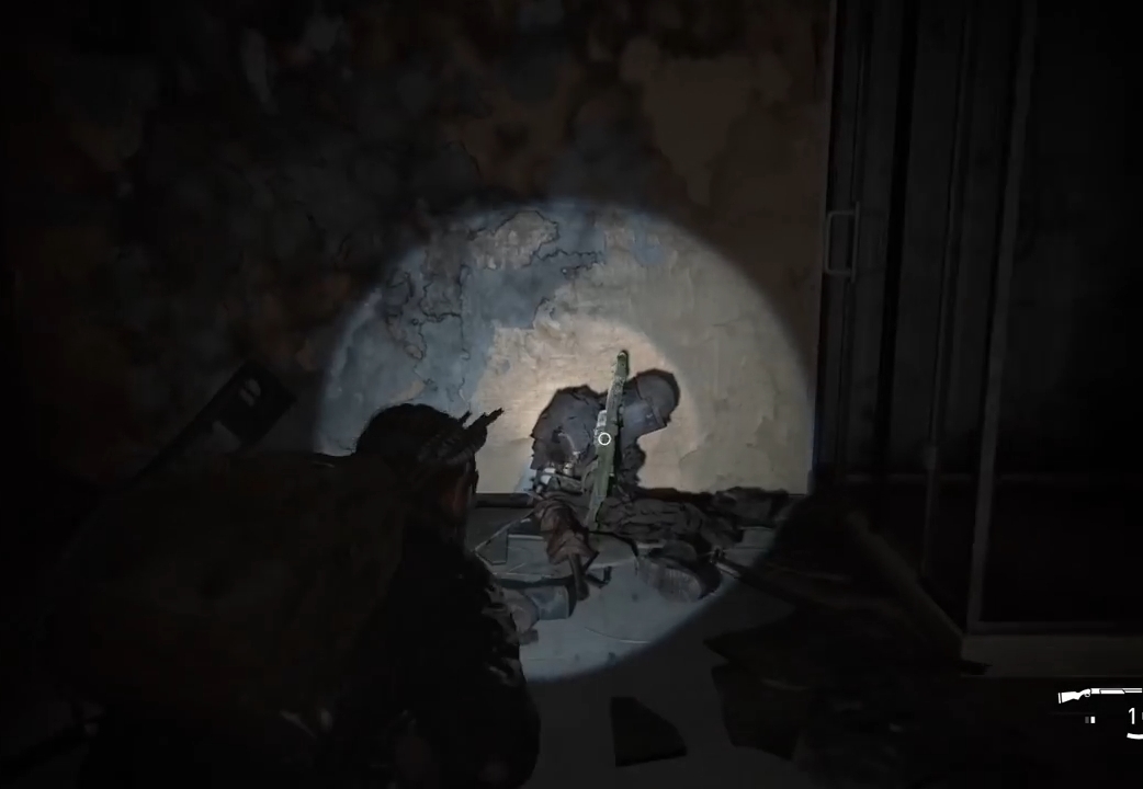 Его можно обнаружить в главе «Спуск». Спускайтесь по пожарному шлангу, двигайтесь по единственному маршруту и заходите в ванную комнату. Оттуда – по балке в соседнюю комнату. Там вас встретит новый инфицированный.