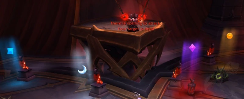 - Вокруг босса буду находится 4 постамента. При их активации раз в 3 сегунды, в течении 15 секундного каста вы будете получать урон. Взамен, босс будет получать исцеление, однако урон будет увеличиваться с каждым проком. Любой урон прервет каст. По завершению каста на вас будет 2-минутный дебафф, который не даст использовать постамент повторно.