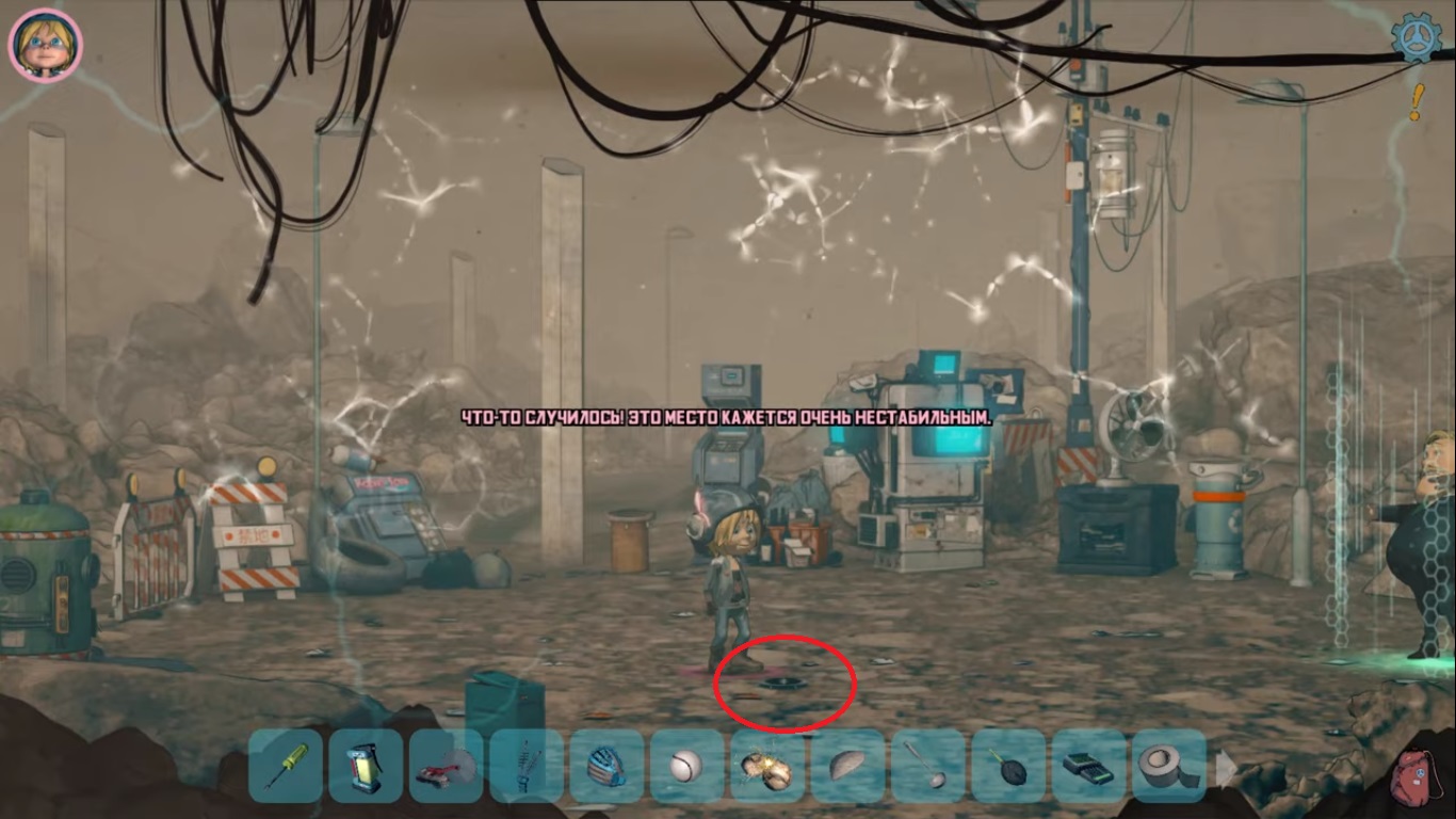Дальше нужно перейти на локацию с Кубом, в самом левом крае локации стоит шкаф с цепями. Используйте минибота на цепи, чтобы открыть шкаф. Вы достанете отвертку, вантуз и быстрый спрей.