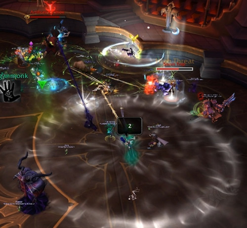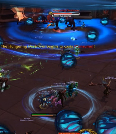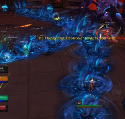 - Босс будет призывать на центре воронку, затягивающую игроков. Через некоторое время, она взорвется, вайпая тех, кто находится в ней.