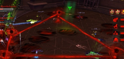 - Когда появятся три сферы, босс выберет трех игроков, которые будут выпускать лучи в сторону друг друга. Рейд должен отойти от сфер, когда отмеченные рейдеры должны будут их перекрыть. Важно, что перекрыть сферы нужно лучами, вставать с сферы самим игрокам не надо.