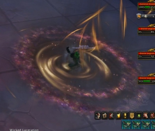 - Секущий взмах и гибельный клинок Кааль (если его неправильно вынесут) будет накладывать на вас бесконечно стакающуюся ДОТу. Чтобы избавиться от них, вам нужно попасть под Комбинацию Разбивателя Камней Грашаала.