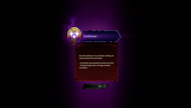 - Тёмный пыл. Уровень порчи постепенно увеличивается, однако вы больше не получаете порчу за прохождение через дверь.