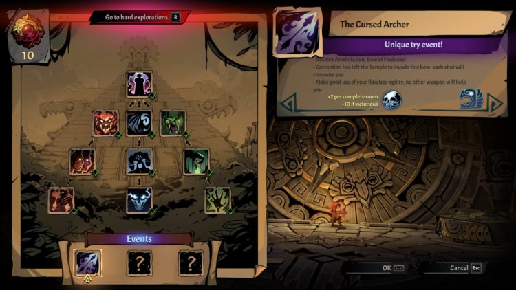 Карта в Curse of Dead Gods будет показывать вам, какие награды вы будете получать за прохождение каждой комнаты. Эта небольшая возможность позволит вам разработать правильную стратегию прохождения и планировать ваш путь заранее.