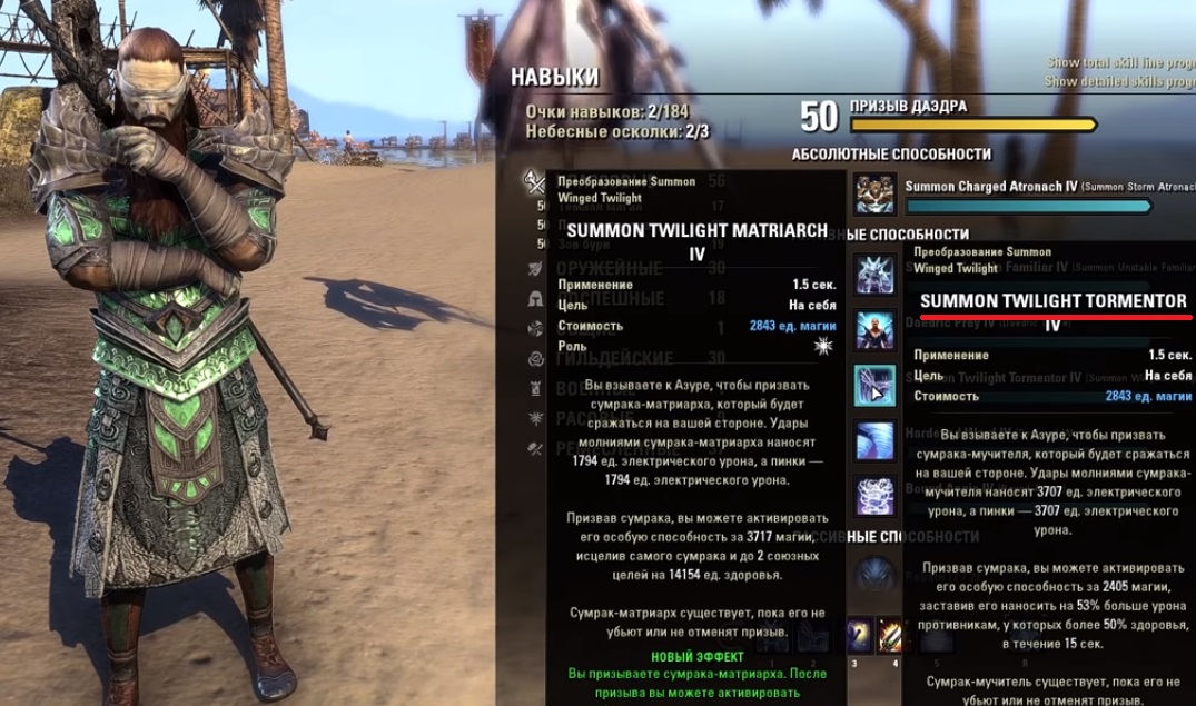 Поэтому вы можете либо качать все сразу, либо качать тот стиль, который вам больше нравится (упор на суммон-игру с Призывом даэрдра + любая атакующая ветка, либо Зов бури + Темная магия).