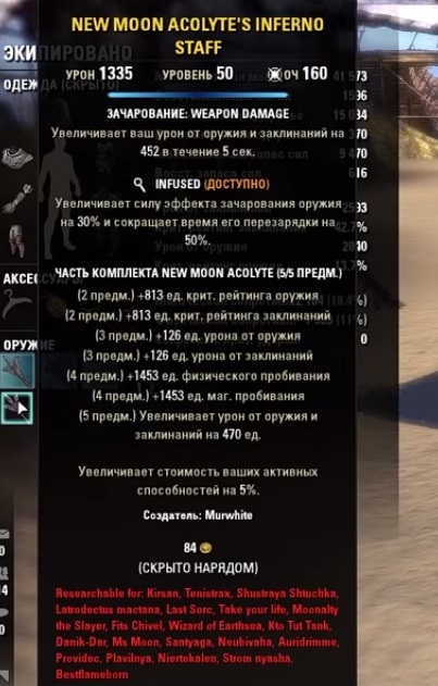 По началу будет не так важно что именно вы носите, но на более поздней игре и в pvp становится почти принципиально что именно надел ваш герой. Вам понадобится сет Джулианоса, он отлично подходит дд-магу в любой тусовке. Можно собрать материнскую скорбь в Дешаане, или в самом крайнем случае можно собрать сет заклинателя-стратега. При игре с питомцами лучше выбить Нью мун акалайт (можно попросить скрафтить в гильдии) и зачаровать на макс магию три части на тело: