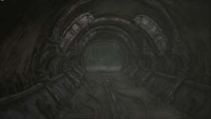 Двигаясь вперед, ищите большое сооружение вдалеке. Это будет похоже на гигантскую башню. Это изображено выше. Когда вы в конце концов доберетесь до него, вы сможете войти через дверь в основании башни. Пройдите внутрь и продолжайте идти по пути. Он должен петлять, приводя вас в замкнутый туннель.