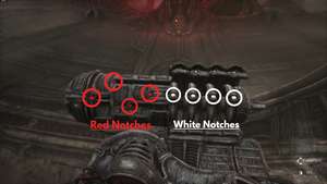 Перейдите к только что созданной панели управления и активируйте её. Машина снимет верхнюю часть отмычки, обнажая её внутреннюю работу. Внутри вы найдете четыре кольца с белыми насечками справа и четыре канала с красными насечками слева.