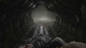 Когда вы восстановите контроль, пройдите через дверь в правой части комнаты. Следуйте по туннелю впереди, пока не дойдете до запертой двери, и используйте ключ из плоти, чтобы открыть её. На другой стороне снова поверните направо и продолжайте идти по дорожке к другой запертой двери. Положитесь на ключ из плоти еще раз, чтобы открыть его. Внутри вы найдете лифт. Активируйте его, чтобы приблизить действие.
