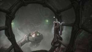 Как только ставни откроются, идите налево и найдите лифт. Поднимитесь на втором этаже комнаты и пройдите через арку справа от вас. Вы увидите ранее существо, проползающее через арку впереди. Следуйте за ним, пока он убегает.