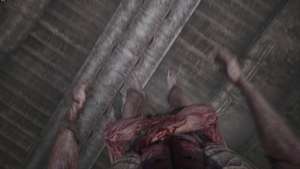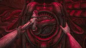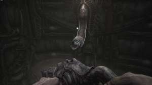 Идите вперед, пока не дойдете до другой запертой двери. Получите доступ к нему с помощью ключа из плоти, а затем активируйте лифт впереди. Когда вы доберетесь до комнаты внизу, главный герой посмотрит вниз и увидит, как руки монстра начинают рвать его живот.