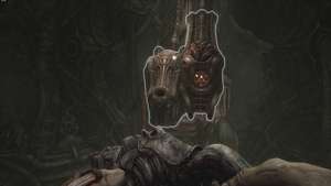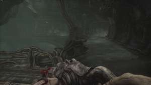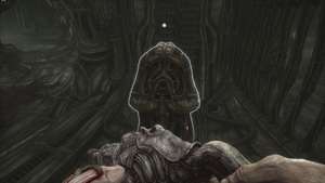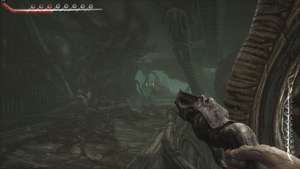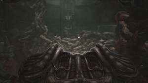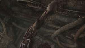 Направляйтесь к сфере переноса и, вместо того чтобы спускаться на ней, перейдите на другую сторону третьего этажа. Вас ждет короткая кат-сцена, в которой руки паразита в очередной раз роются в желудке главного героя, нанося урон.