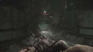 В конце концов, вы доберетесь до сломанной сферической тележки, покрытой кровью и плотью. Здесь поверните налево и следуйте по маршруту. Зарядник начнет бежать к вам, когда вы будете бродить по этому пути, поэтому отойдите назад и вернитесь к вагонетке со сломанной сферой. Когда зарядник завернет за угол, прицельтесь и стреляйте.