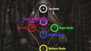 При запуске головоломки два узла справа и слева от панели соединяются проводом. Если вы повернете один из этих узлов, другой тоже повернется. Оба узла станут желтыми, если маленькие стрелки, перемещающиеся вокруг узлов снаружи, будут направлены к центру.