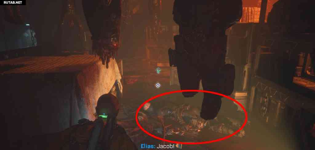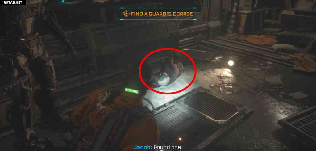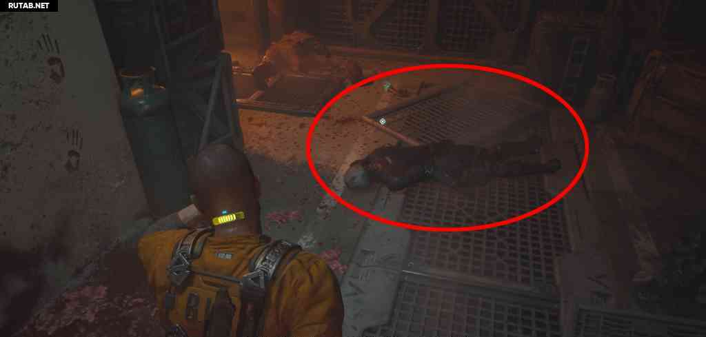 После получения GRP и прохождения через несколько дверей вы окажетесь в комнате с множеством висящих тел. Нужное тело будет на земле перед вами, в середине комнаты.
