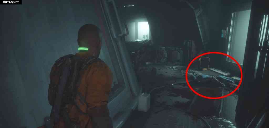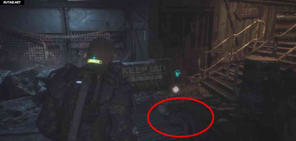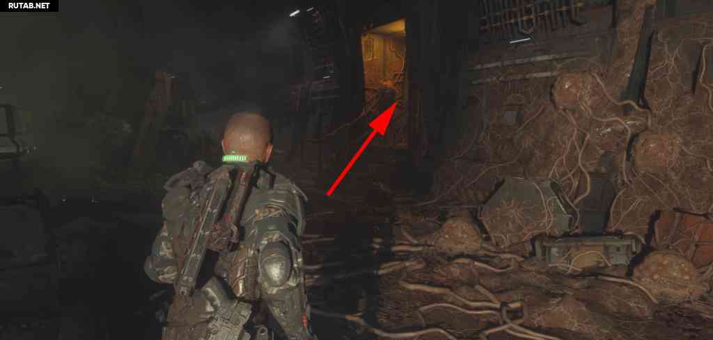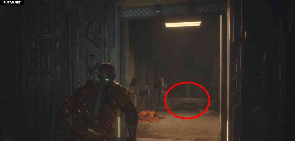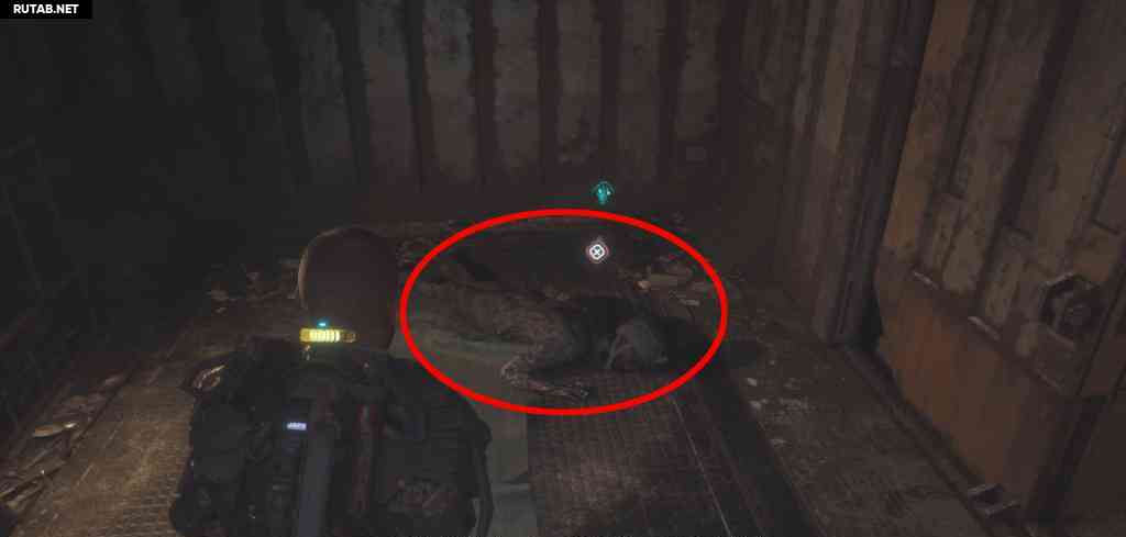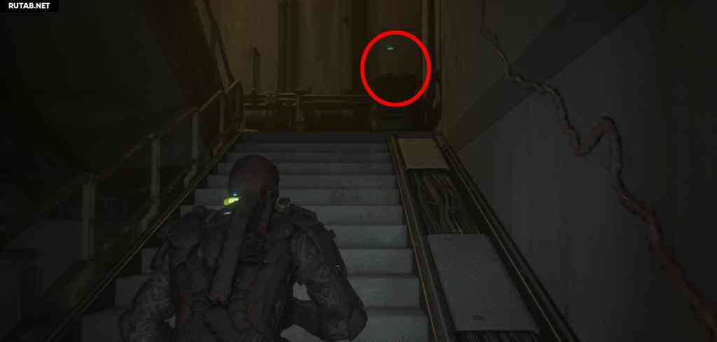 В следующей области со слепыми врагами поднимитесь по лестнице. Сразу после подъема проверьте первую электронную дверь справа, на которой отображается зеленая надпись. На трупе в той комнате.