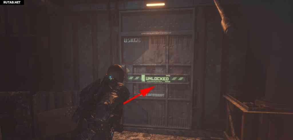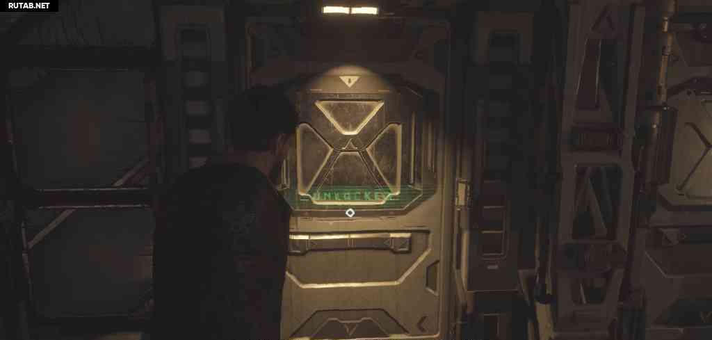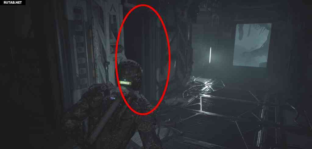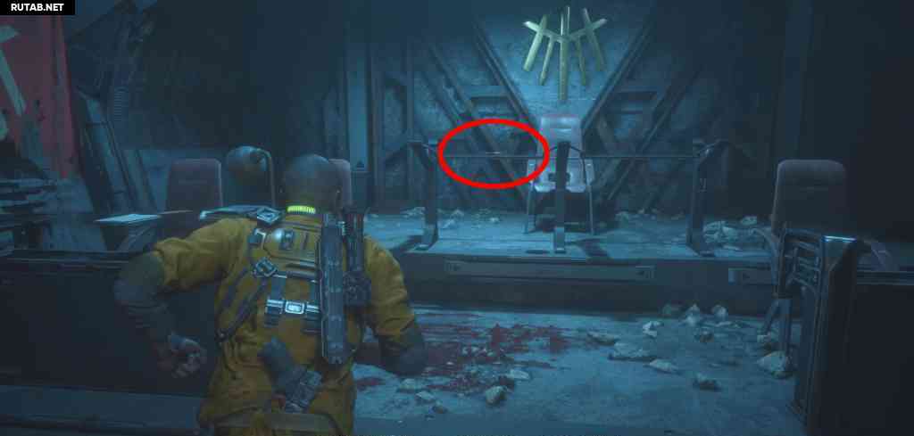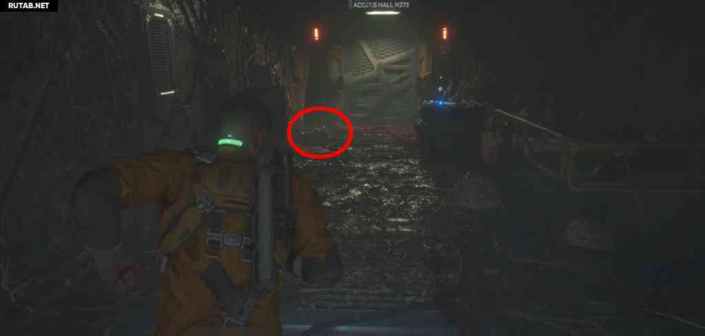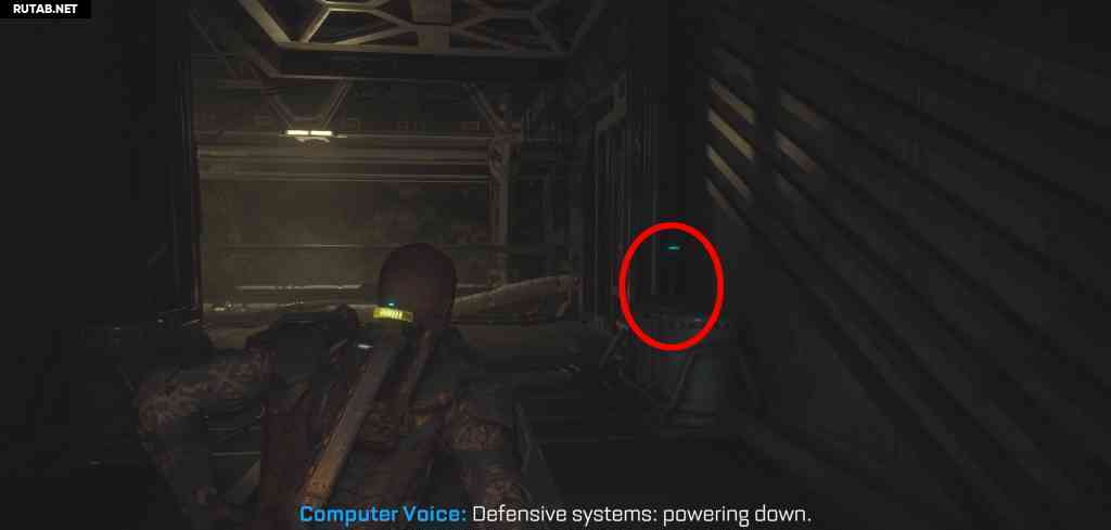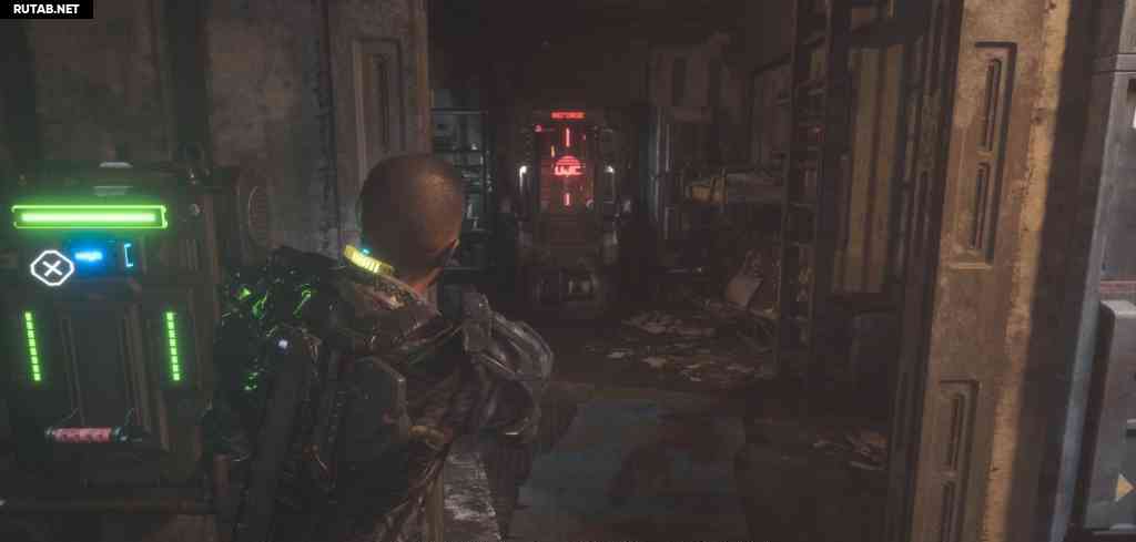 В следующей области со слепыми врагами поднимитесь по лестнице. Сразу после подъема проверьте первую электронную дверь справа, на которой отображается зеленая надпись. На трупе в той комнате.