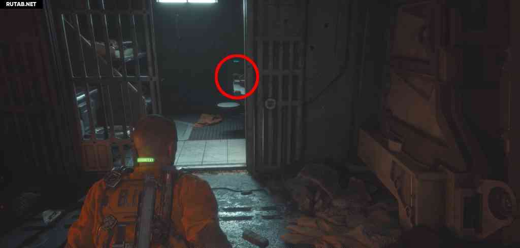 Пройдя через область с грязью на полу, вы проползете через еще больше грязи и увидите тело, схваченное монстром. После этого следуйте по линейному пути, пока не подниметесь к другому короткому вентиляционному пути, а затем выпрыгните на другую сторону. Слева, перед дверью в Purification B H207. Взберитесь по ящику на небольшой балкон с сундуком с ресурсами. Рядом с этим сундуком вы найдете предмет коллекционирования на коробке.