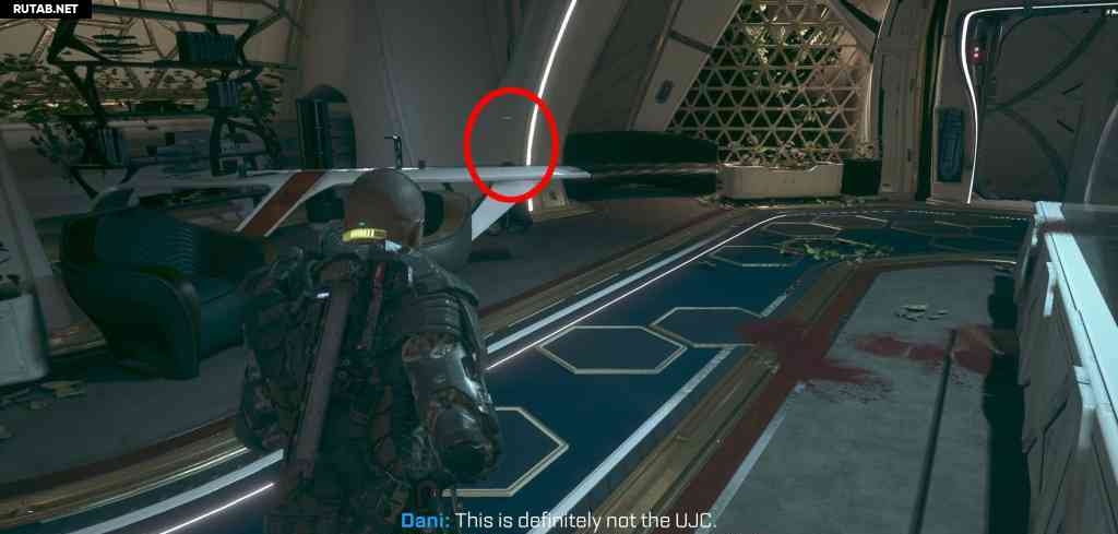 После большой драки в ангаре есть кат-сцена, где Дэни дает вам дробовик. После кат-сцены поднимитесь наверх и на полу за столами найдите труп.