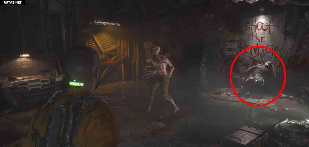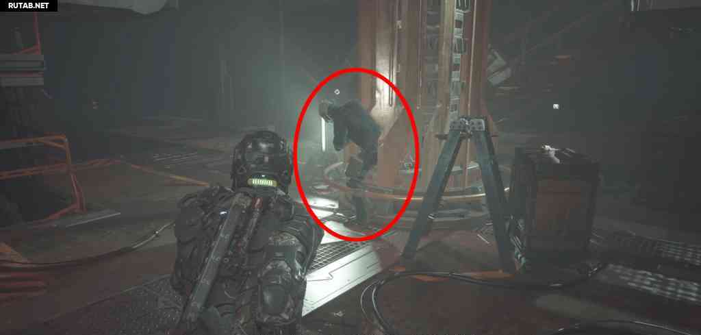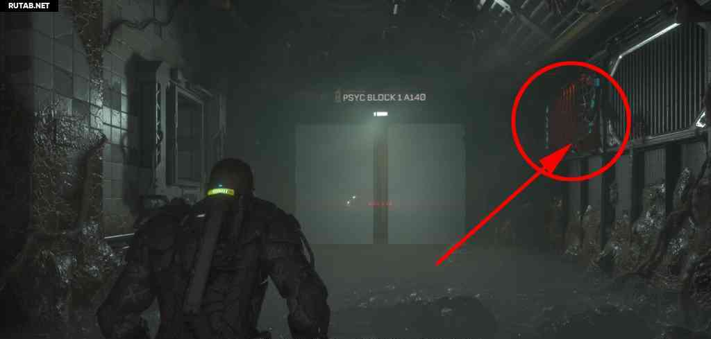 Внутри электростанции, после использования консоли, чтобы открыть ворота, пройдите в следующую комнату (Перевод заключенных S408), и на первом этаже вы можете найти труп, застрявший в приспособлении с вращающимся лезвием. Подняв его, вы активируете все окружающие ловушки в комнате и активируете врагов.